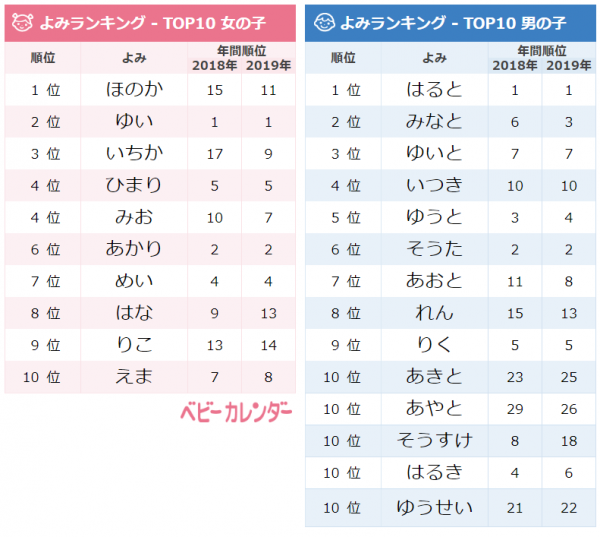 年最新版 去年の赤ちゃんの名前ランキング1位は 4社の名前ランキングを徹底比較 はいチーズ Clip